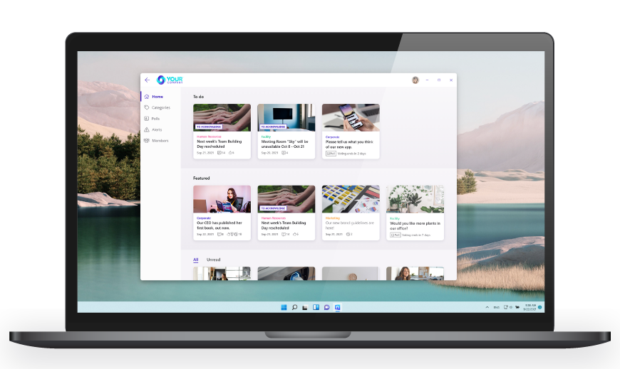 Waar de Message Server beperkt was tot een mobiele versie van de werknemersapp, biedt de Netpresenter Content Hub ook een desktop app. Het belangrijkste voordeel van de desktop app is de verhoogde interactie die hij mogelijk maakt met PC gebruikers.