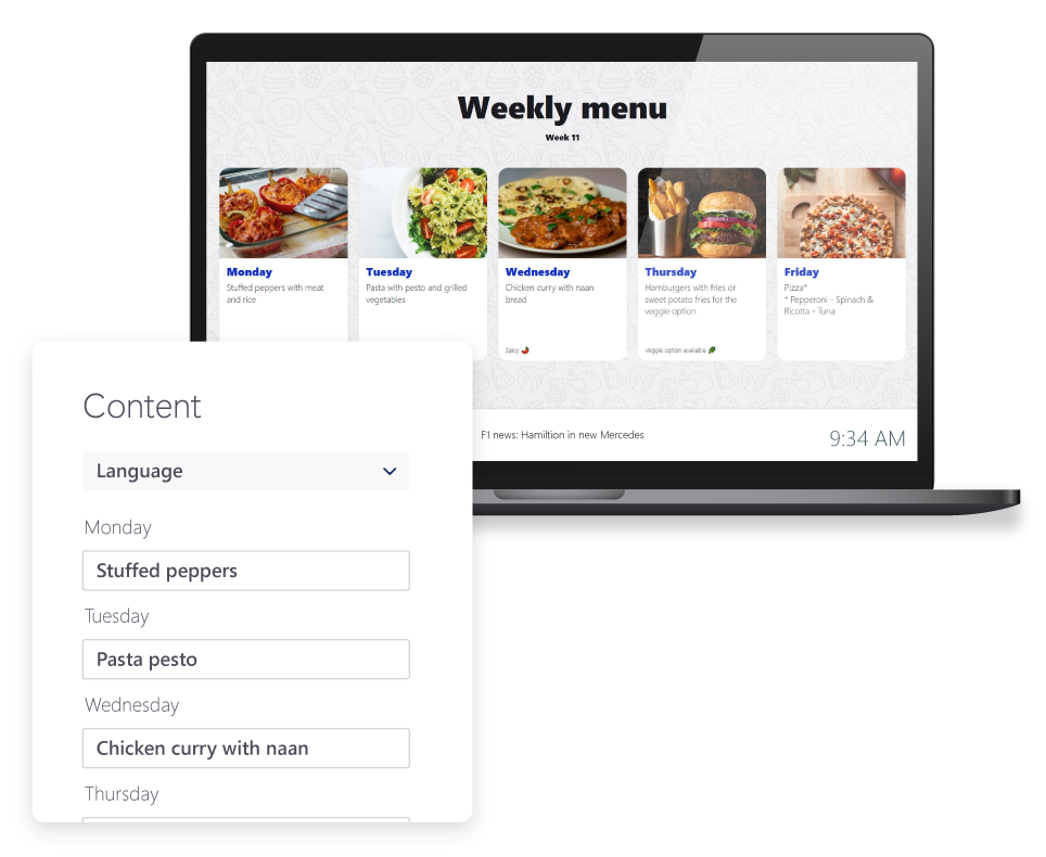 Als reactie op regelmatige verzoeken van Message Server-gebruikers, biedt de Netpresenter Content Hub een breder scala aan template-mogelijkheden en meer flexibiliteit. Waar de Message Server gebruikers beperkte tot slechts een titel- en tekstveld, laat de Content Hub templates toe die meerdere tekstvelden bevatten. Dit biedt aanzienlijk meer flexibiliteit om informatie effectief te presenteren, zoals blijkt uit het onderstaande voorbeeld.