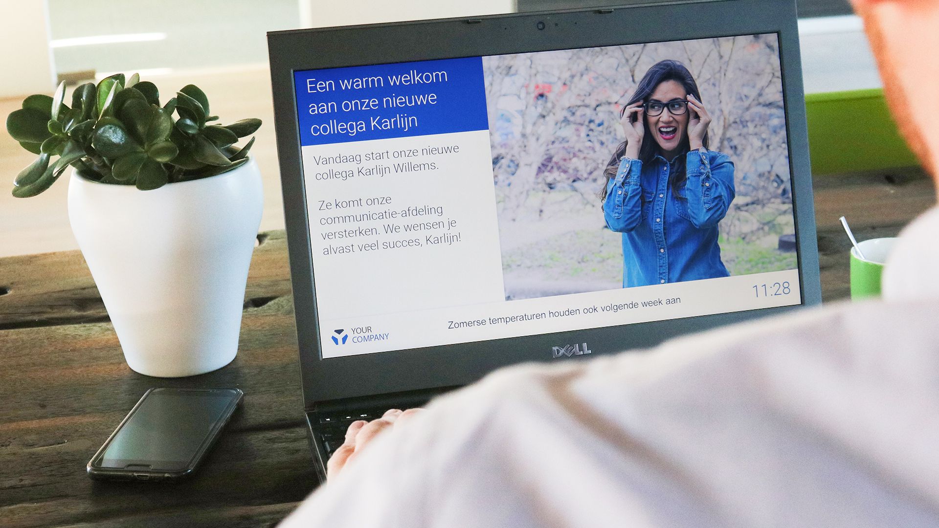 Laat nieuwe werknemers zichzelf voorstellen via een berichtje op je narrowcastingschermen. Laat ze ook vertellen over hobby’s of dingen waar ze passie voor hebben. Zo is het voor nieuwe werknemers en hun collega’s makkelijker om elkaar te leren kennen. Andere werknemers kunnen over hun nieuwe collega lezen op hun mobiele app of op een narrowcastingscherm. Wat blijkt: tegenpolen trekken elkaar niet aan. Dus, als je werknemers zien dat ze dezelfde interesses hebben als hun nieuwe collega, is het makkelijker om een gesprek aan te knopen. Zo kunnen ze een band opbouwen. Bijkomend voordeel: goede banden tussen collega’s verhogen de productiviteit.