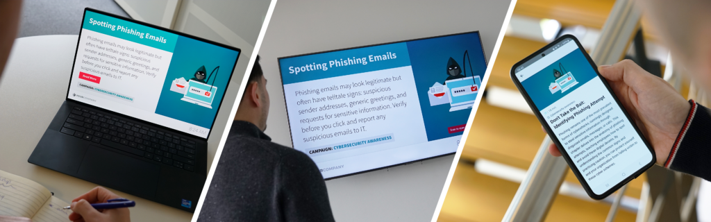 Netpresenter plays an important role in strengthening this human firewall. Through omnichannel communication, information can be shared via PCs (Corporate Screensaver), TVs (Digital Signage), and smartphones (Employee App), training the entire organization daily on cybersecurity. Knowledge levels can be tested through quizzes. With Netpresenter Smart Campaigns, this whole process is automated. After setting up a campaign and corresponding knowledge goal, the Smart Campaigns train and test employees fully automatically. Based on the measured results, the training intensity is automatically adjusted until the set objectives are reached.