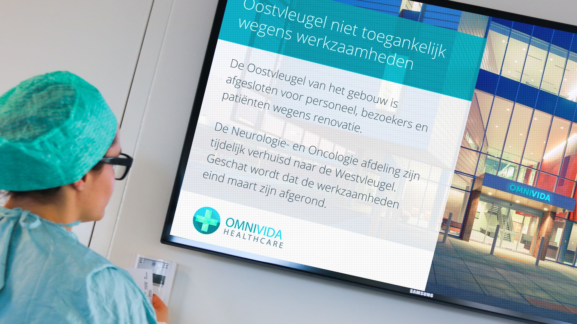 Wij doen dat niet via een uitgeprint A-4’tje op een memobord in de kantine, maar wel door dagelijks informatie te verspreiden via verschillende digitale kanalen. Zo kunnen do’s en don’ts omtrent het beschermen van patiëntgegevens bijvoorbeeld automatisch worden getoond op grote televisieschermen bij de verpleegbalie. Daarnaast kan een interactieve screensaver op iedere computer of zelfs op ieder mobiel apparaat geïnstalleerd worden. Toon hier bijvoorbeeld kleine stukjes wet- en regelgeving herhaaldelijk op of bedrijfsnieuws, vernieuwde protocollen en reminders voor trainingen.