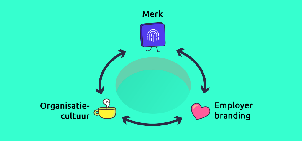 We beschreven in diezelfde blog dat Een employer brand misschien niet zo belangrijk gevonden wordt als de bredere definitie van ‘merk’, maar met de beschreven verschuiving in de aard van ‘het merk’ moet er een verschuiving in focus plaatsvinden. Want je organisatiecultuur is deels je employer branding geworden. En je employer branding is onderdeel van je merk. Die drie zijn onlosmakelijk met elkaar verbonden nu organisaties geen black boxes meer zijn, maar glass boxes zijn geworden.