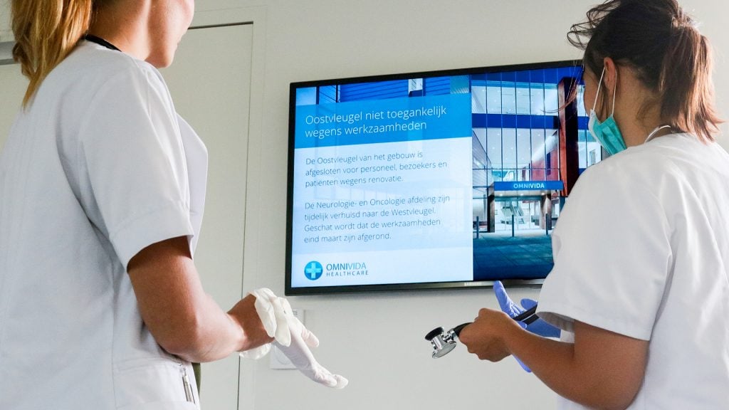 Narrowcasting kan binnen een ziekenhuis enorm van waarde zijn. Of het nou gaat om een scherm met bewegwijzering, informatie over bepaalde behandelingen, geruststellende boodschappen, belangrijke informatie voor het personeel, boodschappen over gewijzigde procedures of zelfs alertering – ze dragen allemaal bij aan betere patiënt- of werknemerservaring. Het resultaat daarvan is meer ontspannen patiënten en bezoekers, meer betrokken en beter geïnformeerde werknemers, betere naleving van procedures en minder fouten. In deze blog laten we zien hoe vijf ziekenhuizen narrowcasting succesvol inzetten.