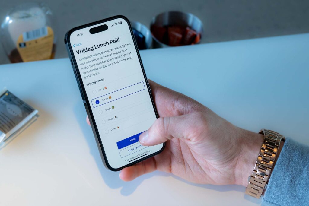 - Real-Time feedback en enquêtes: Een werknemersapp bevat vaak real-time feedback via pols en enquêtes, die inzicht geven in de stemming onder werknemers. Dit stelt het management in staat om inzicht te krijgen in de perceptie en direct problemen aan te pakken.